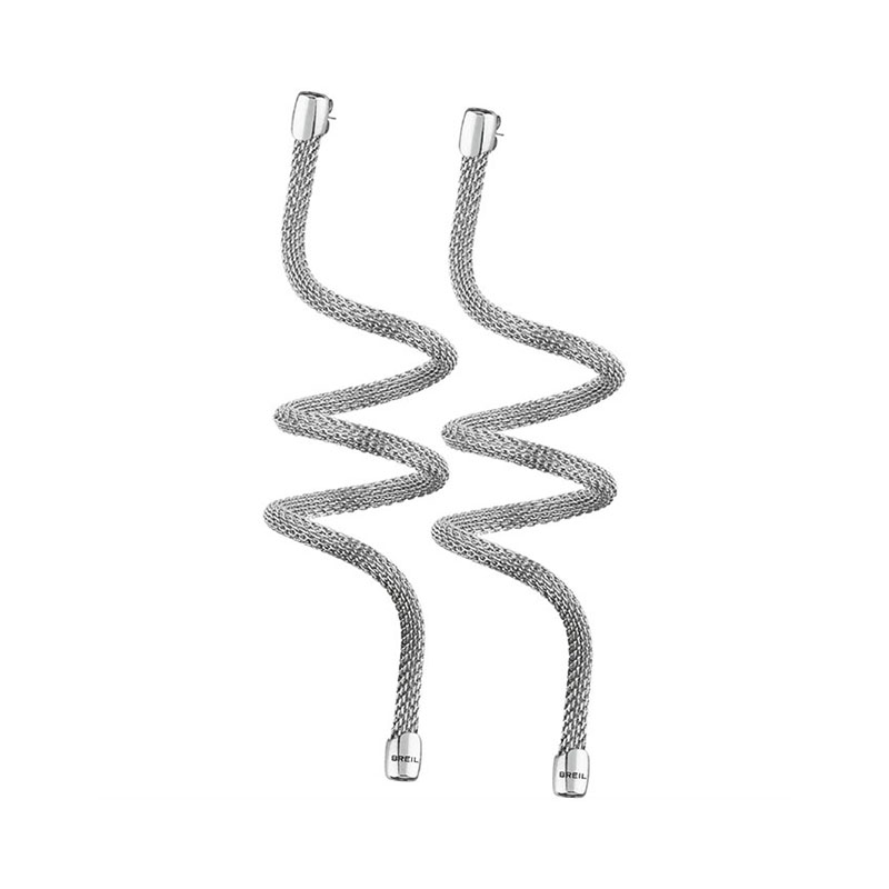 Maglia in acciaio lucido, modellabile nell’indosso, con terminali in acciaio lucido personalizzati. Lunghezza totale 20 cm.