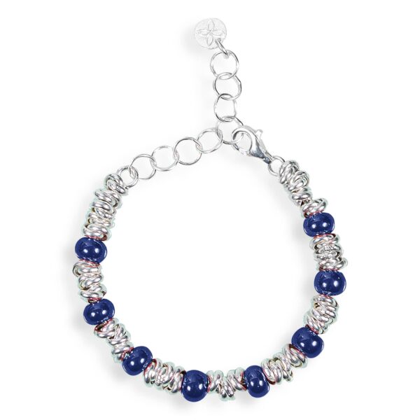 Bracciale da bambino, modello Baby Bond 04. Con chiusura a moschettone regolabile completamente in Argento 925 e pietre in Ceramica.