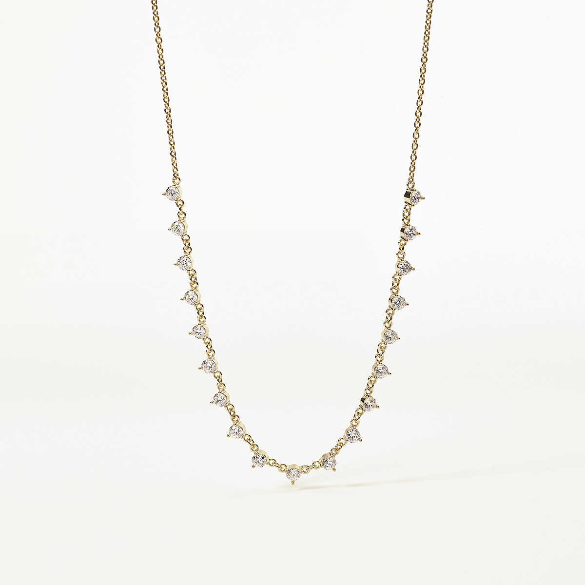 Girocollo in argento 925 dorato catena rolò con 19 castoni, con zirconi bianchi Ø 3 mm. Larghezza 1.50 mm, lunghezza regolabile da 36 a 40 cm.