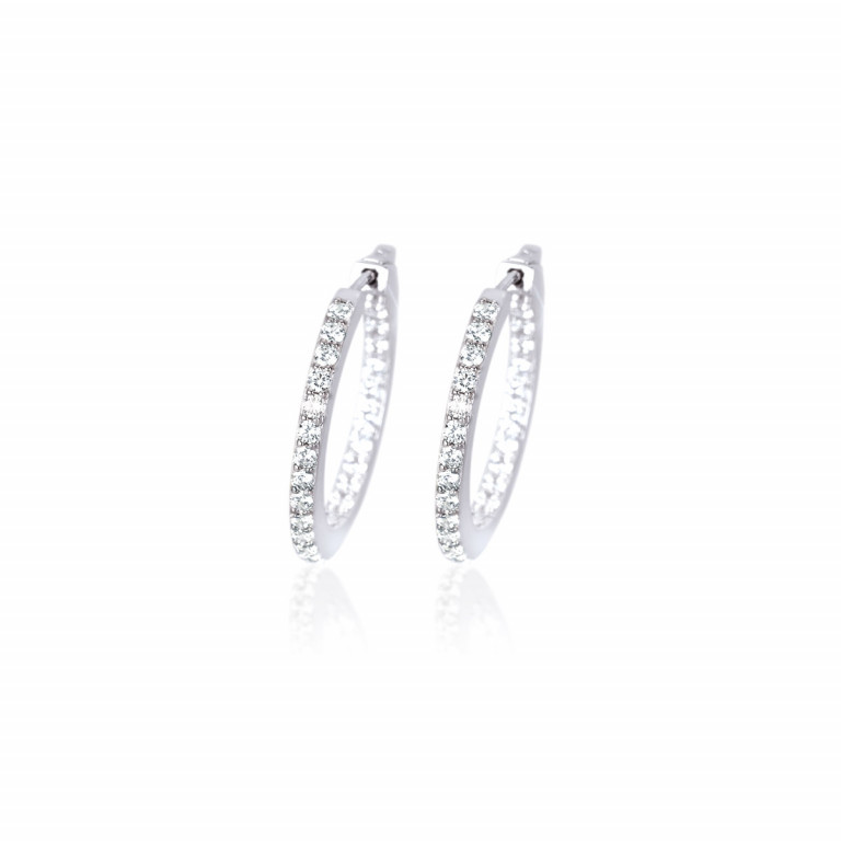 Orecchini a cerchio in argento con zirconi. Incastonatura degli zirconi a griffe. Misura unica.